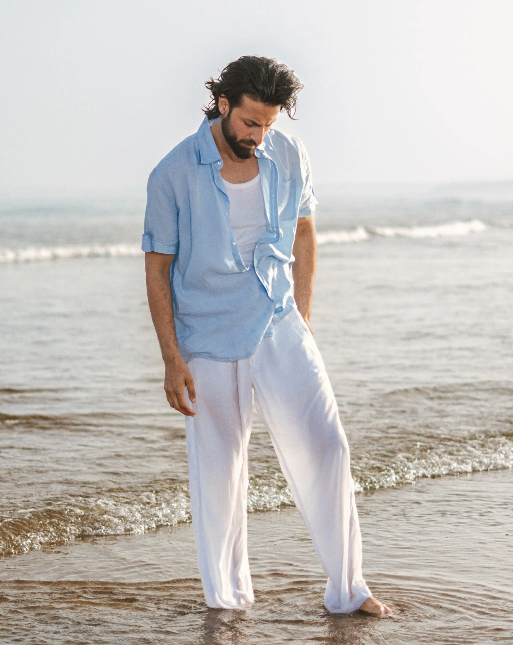 Baby Blue Linen Button Down, Half Sleeves