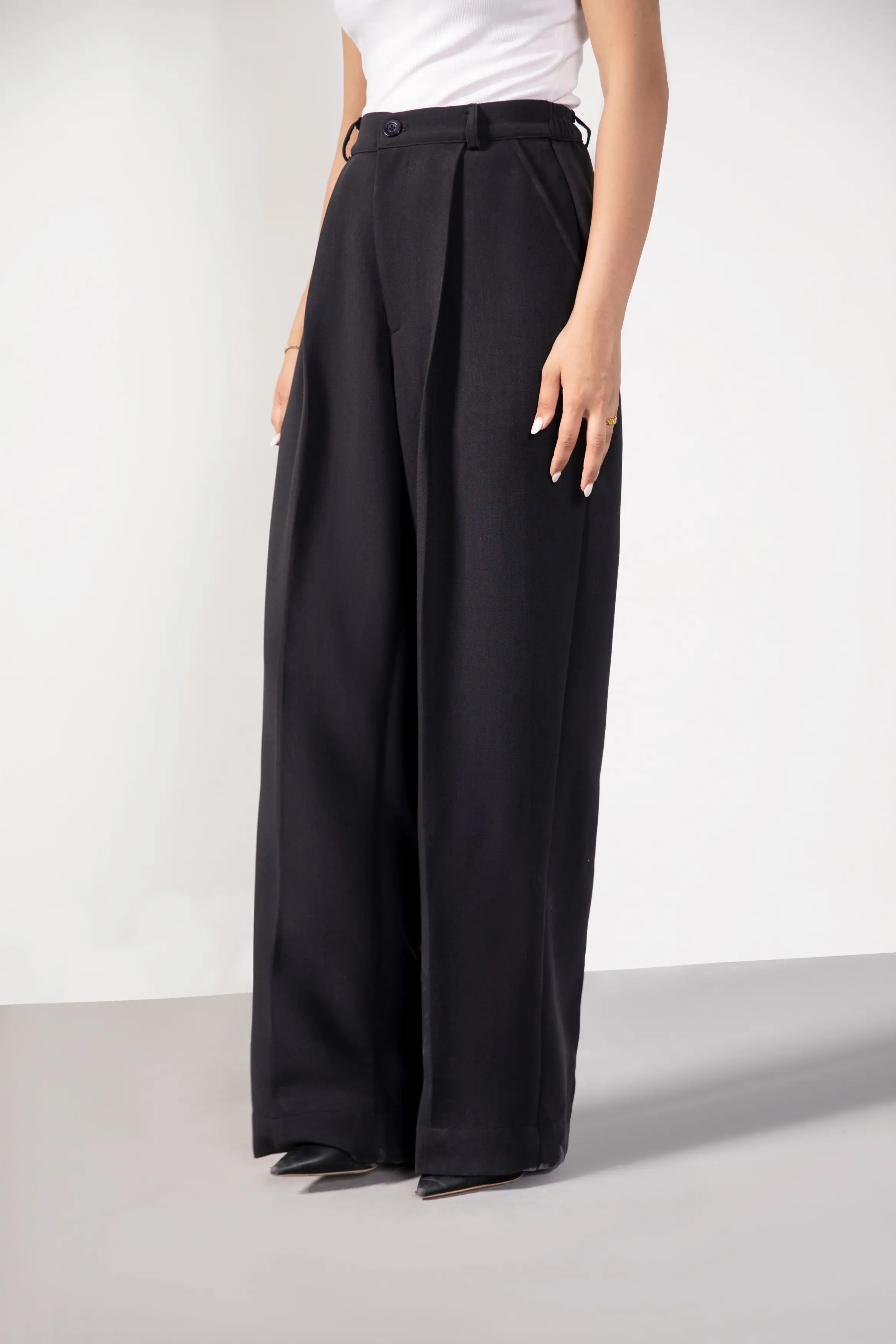 Casual pleated pants, for your every-day wear. Made with korean blended fabric with an elastic belt at the back for that perfect and comfortable fit. Comes with pockets on both sides and a sleek fall to out together all your last minute looks.