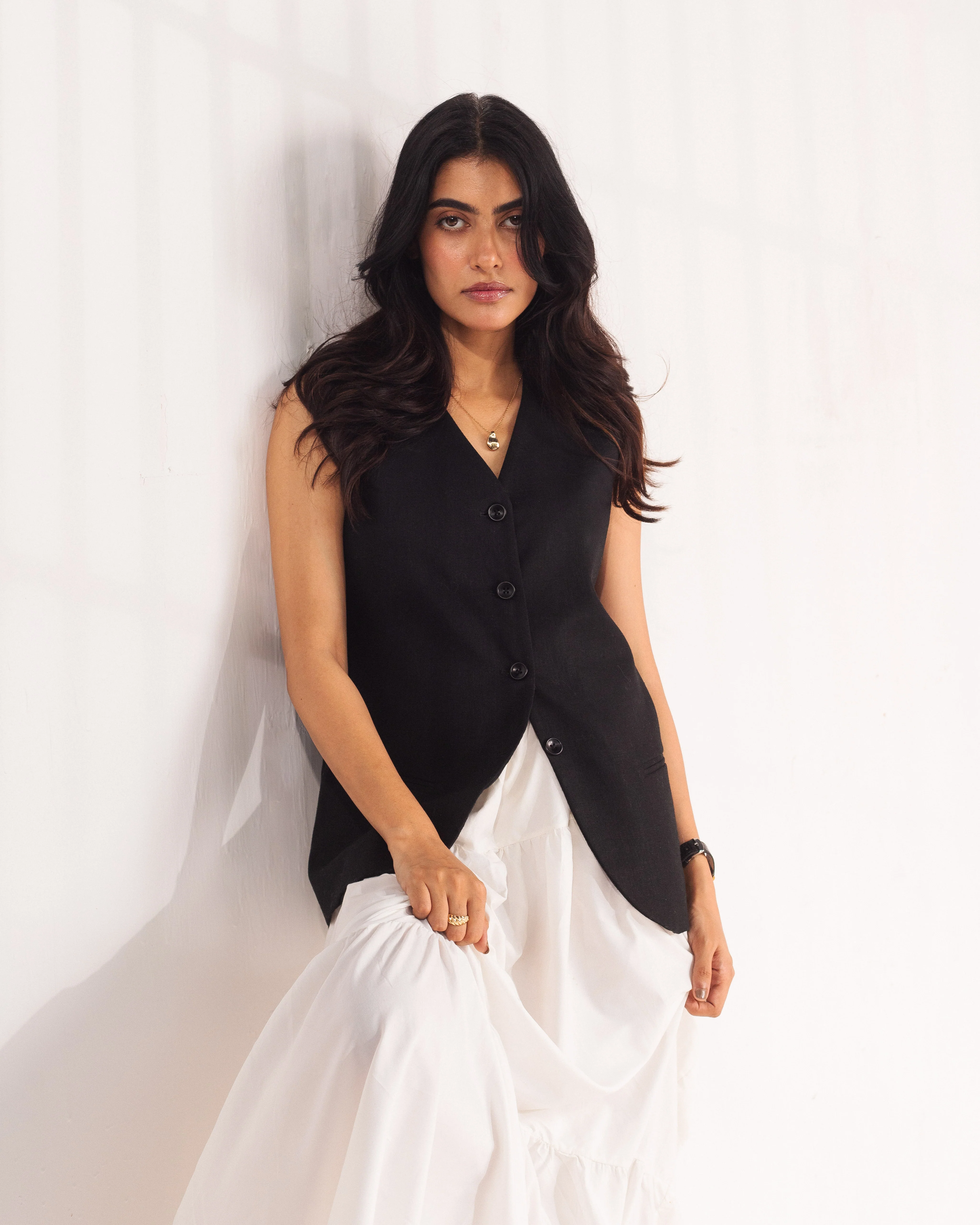Premium linen fabric. Classic Waistcoat. Button fastening on the front section. sleeveless. inside pockets on the both sides.