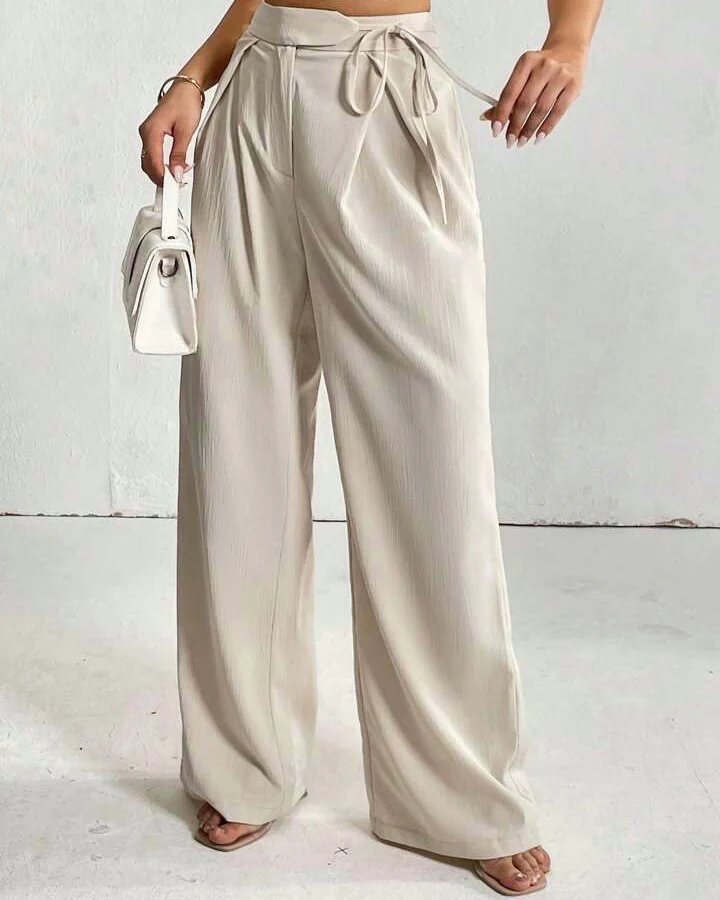 Linen Drawstrings Pleated Pants